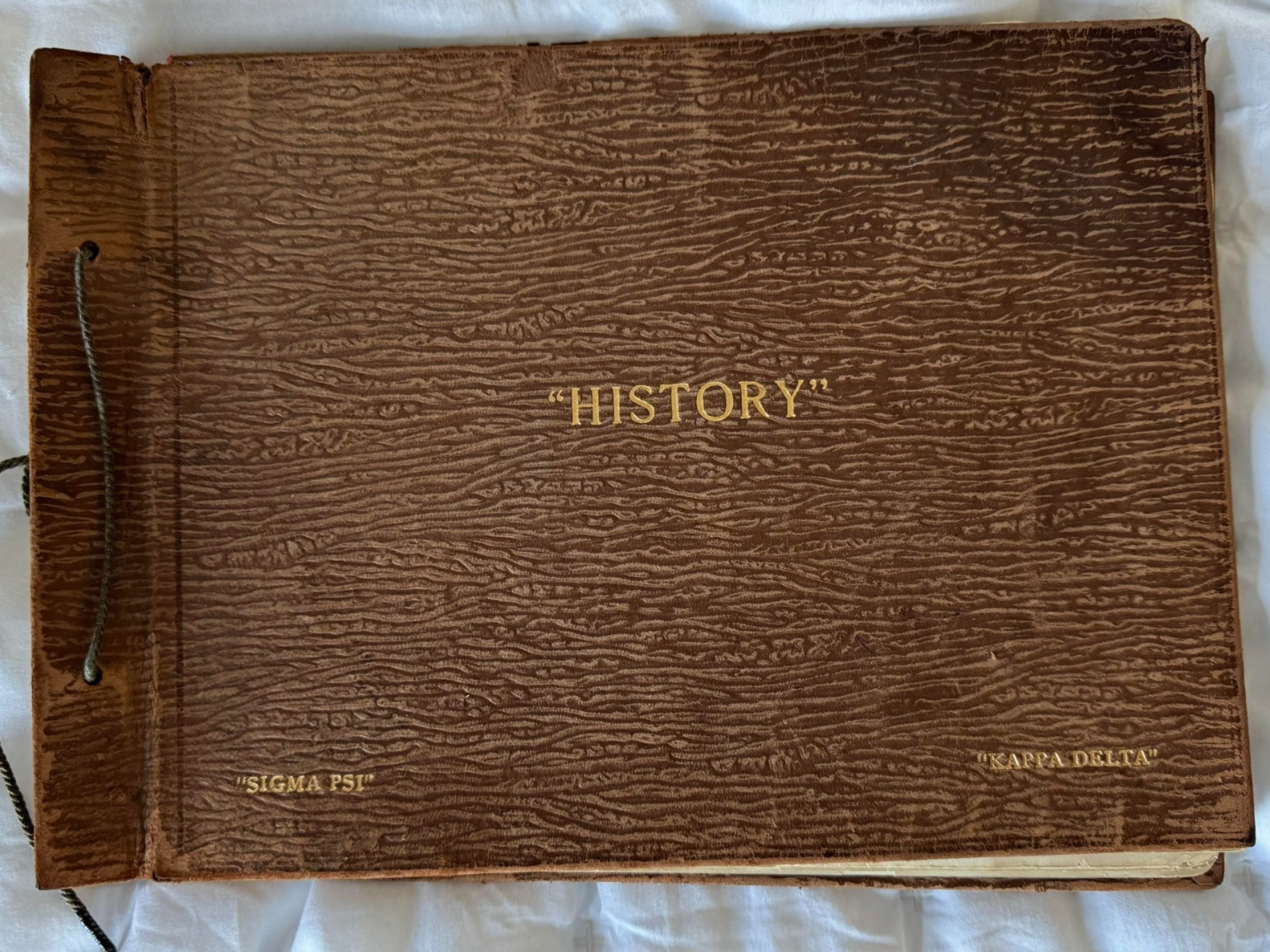 We have the unique privilege of reading personal recollections of a few of the first Sigma Psi initiates in a beautiful leather-bound book. Click here to read an account of our installation story.